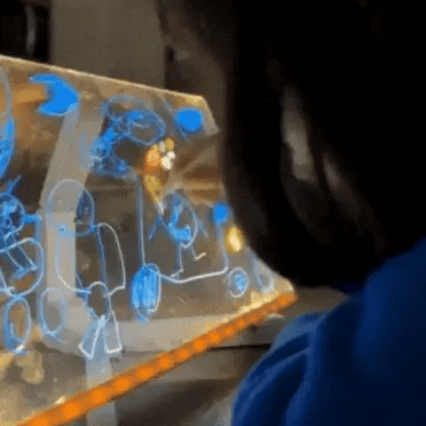 À partir de 3 ans, mais même les plus petits adorent regarder la lumière et essayer de repasser des formes simples. L’utilisation est totalement intuitive.