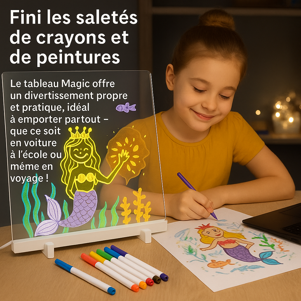 Non, c’est une lumière douce et non agressive, conçue spécialement pour les activités créatives des enfants. Elle reste confortable même dans une pièce sombre.